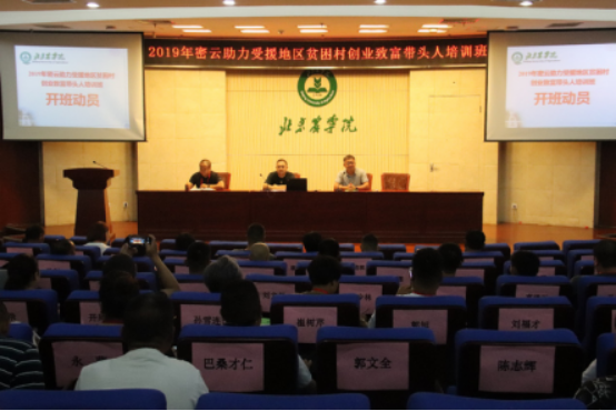 此次培训由密云区扶贫援合办、密云区人力资源和社会保障局、河北省滦平县扶贫开发办公室、内蒙古巴林右旗扶贫开发办公室、青海省玉树市委组织部、北京农学院农村干部培训学院共同承办。