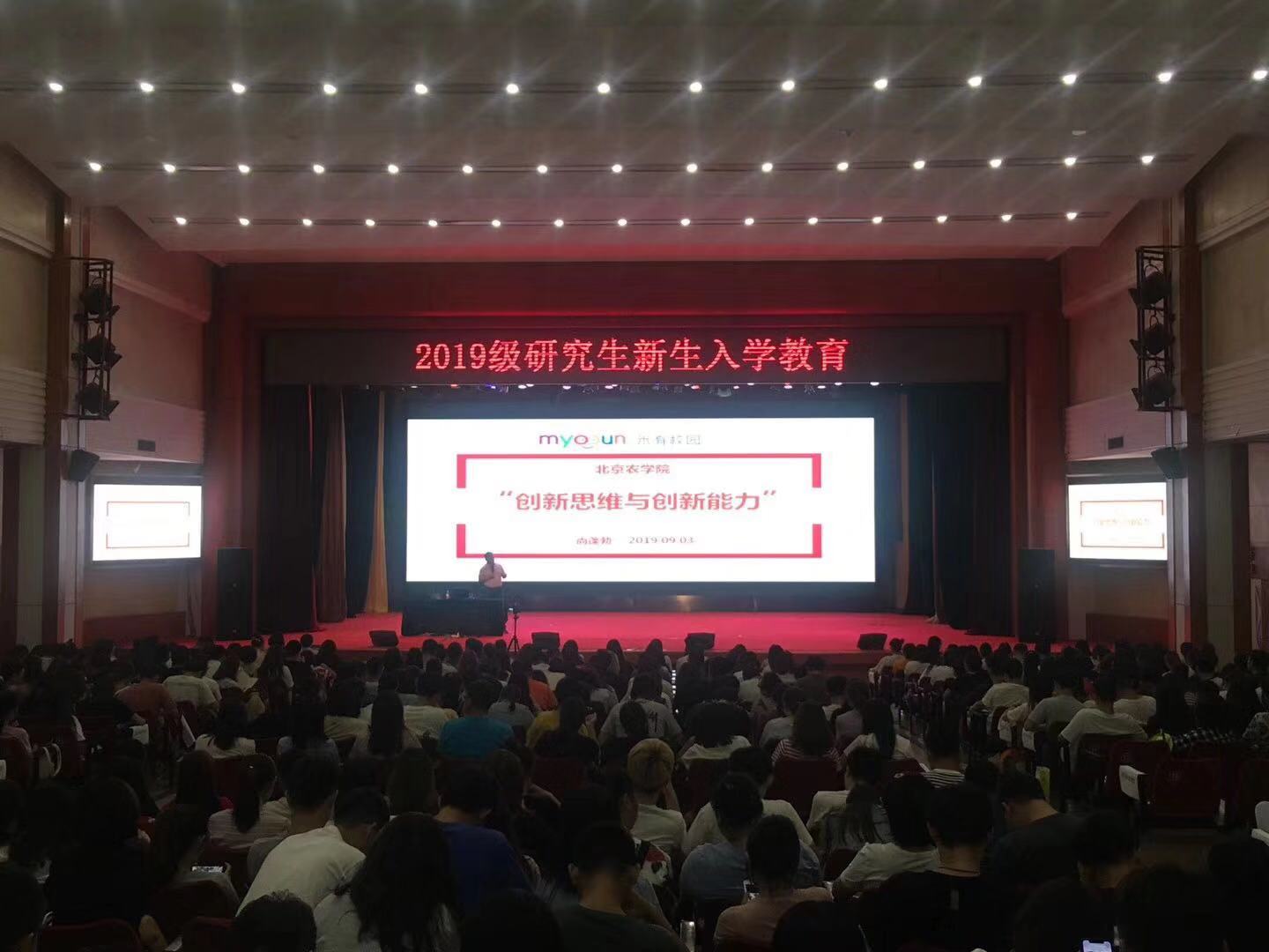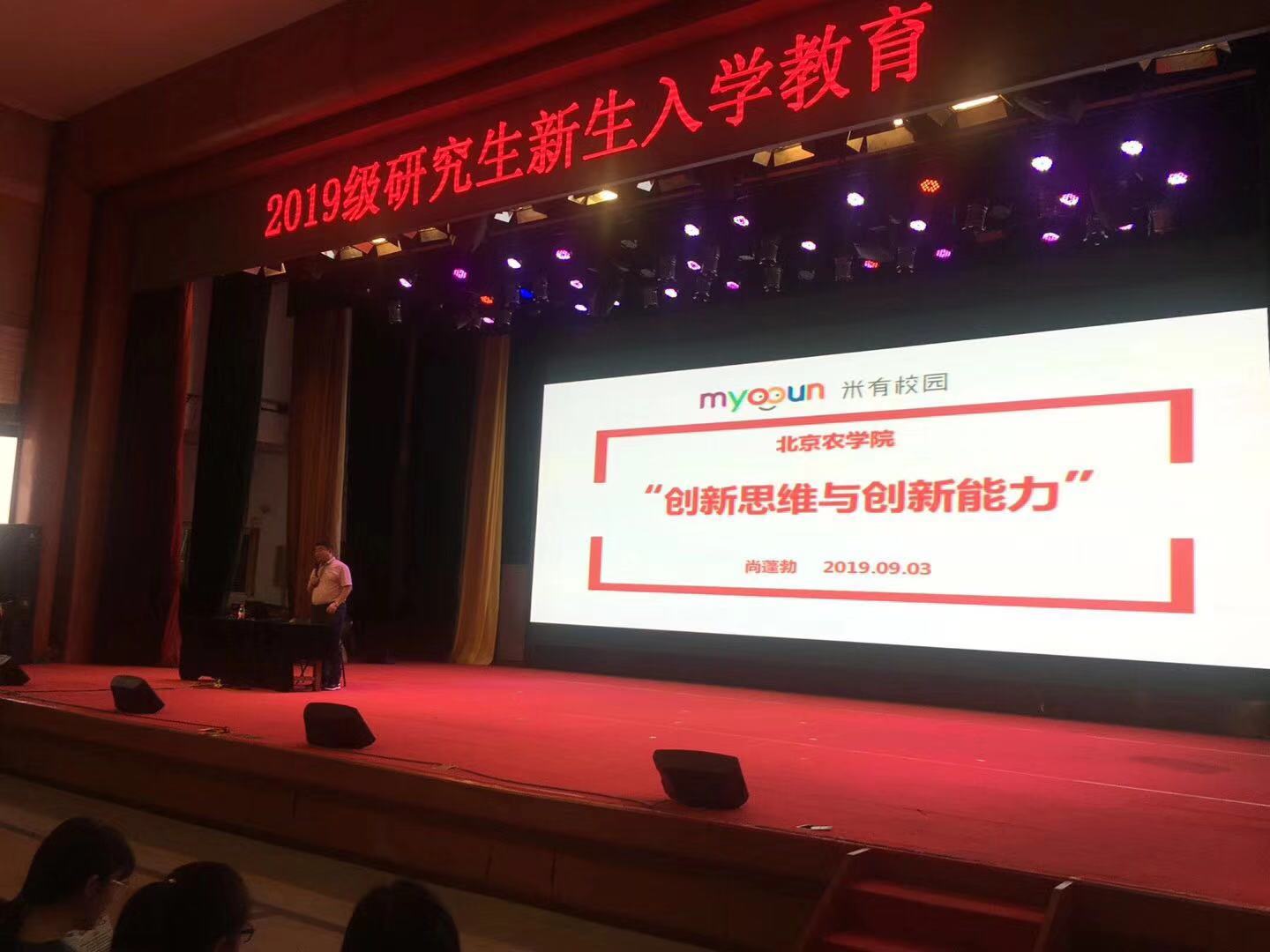 2019年9月3日下午,研究生处与创新创业学院联合组织开展了2019级研究生创新思维与创新能力的培训。中国“互联网+”大学生创新创业大赛专家委员会委员、中国教育创新校企联盟副秘书长、中国管理科学研究院“中国管理智库”特聘专家、米有校园科技有限公司联合创始人尚蓬勃老师为我校研究生新生带来了《创新创业扬帆起航-踏上持续创新的人生之路》的主题培训。研究生处副处长董利民老师、研究生处杨毅老师、创新创业学院副院长孙曦老师等参加了培训。