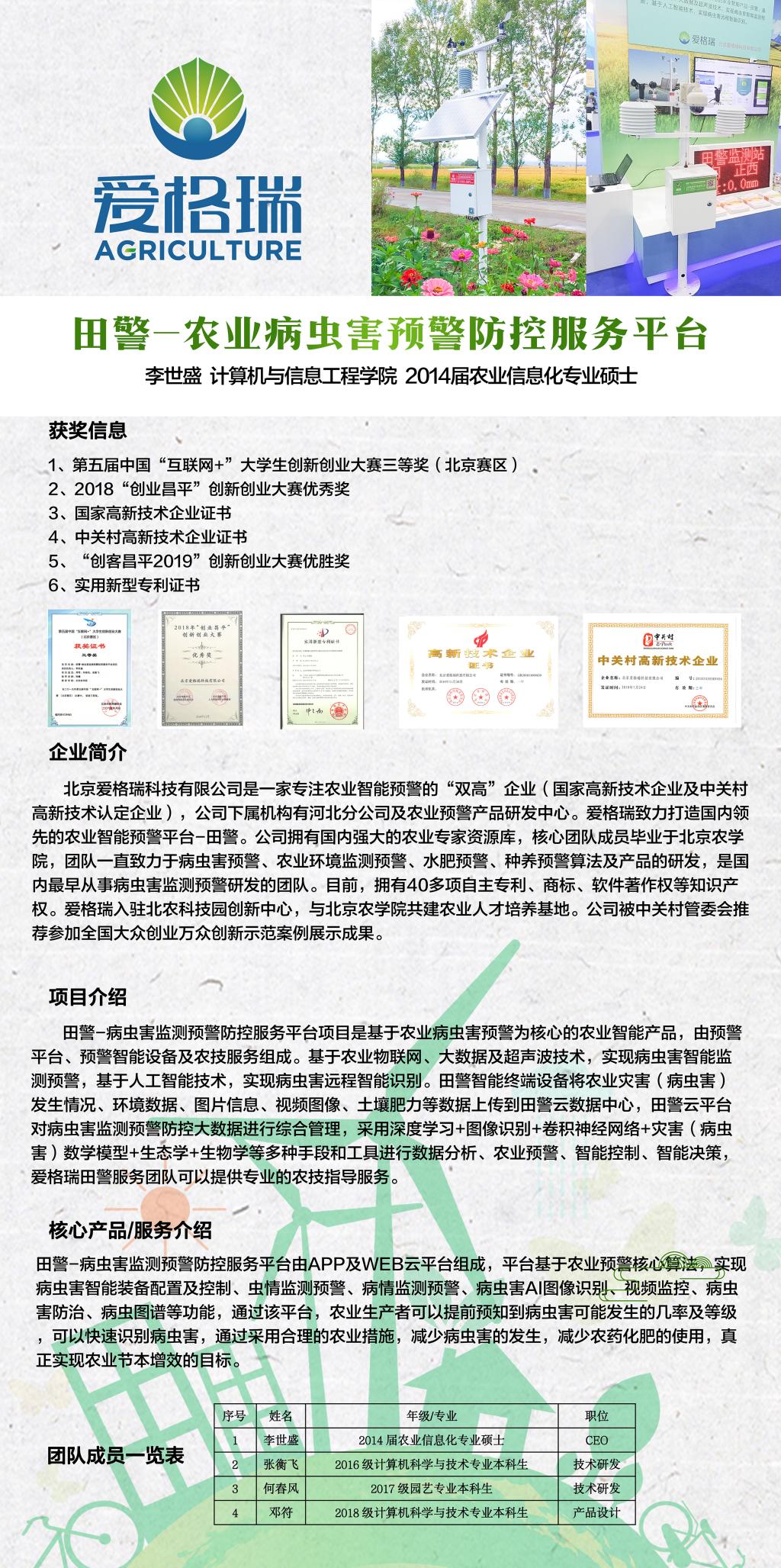 太阳集团tyc5997优秀大学生创新创业团队展示(三)——田警—农业病虫害预警防控服务平台