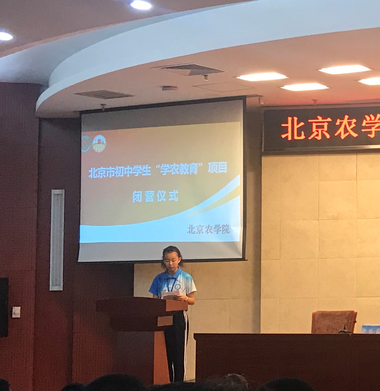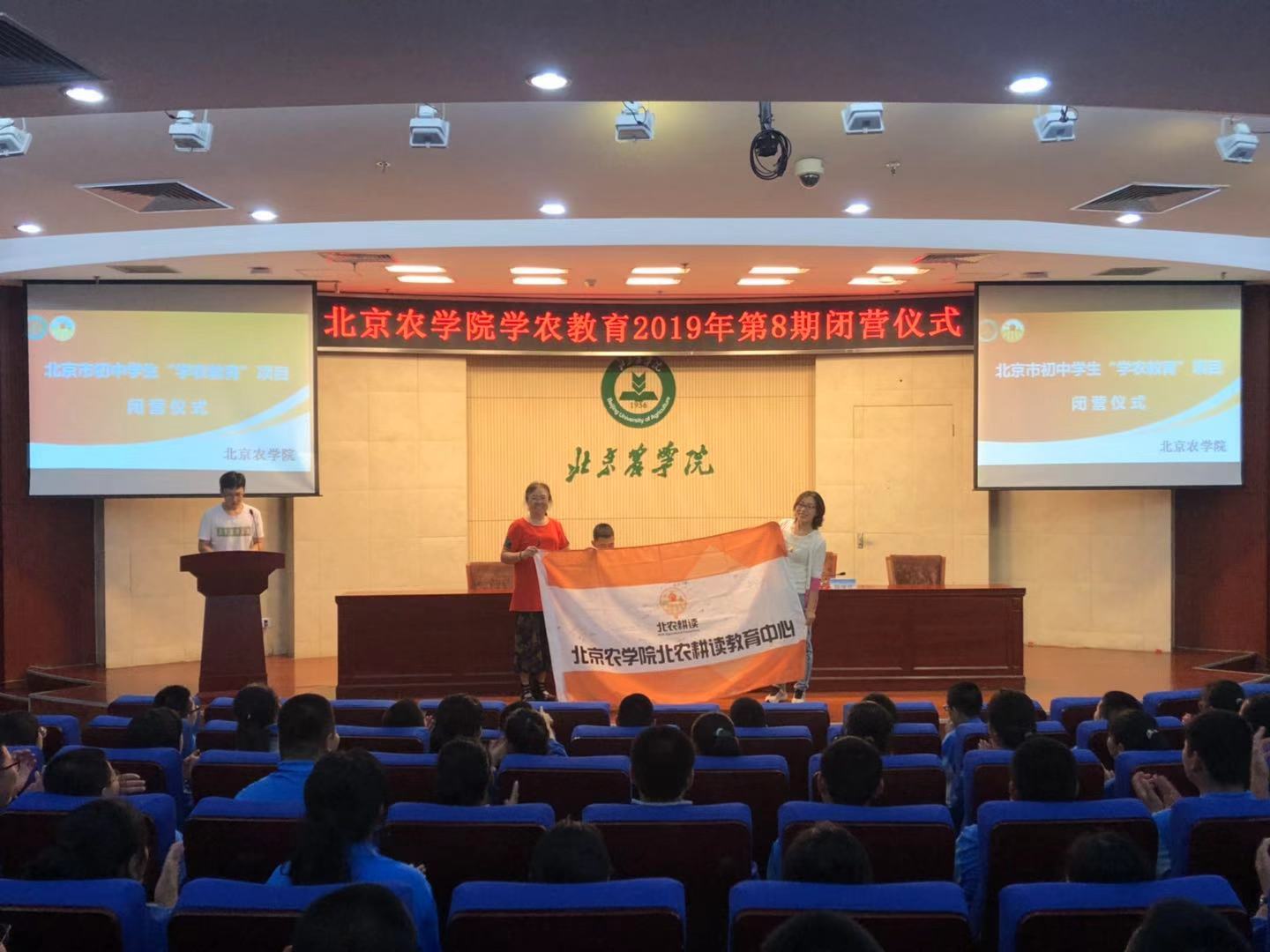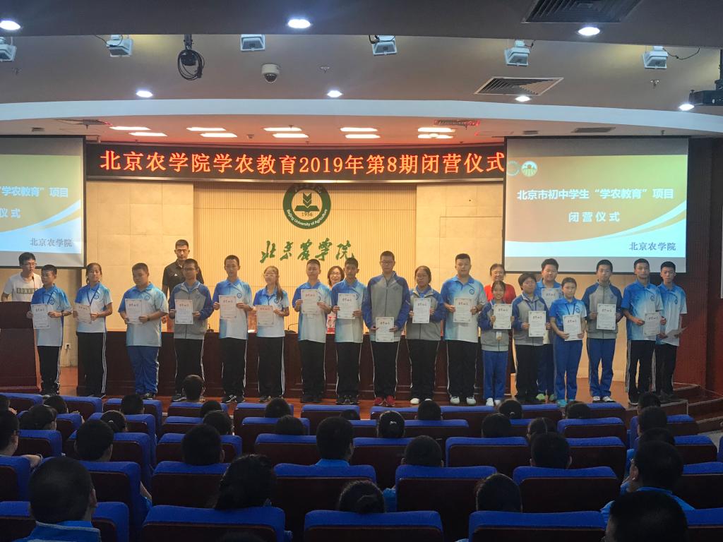 9月27日中午12:00太阳集团tyc5997学农教育2019年第8期闭营仪式在太阳集团tyc5997图书馆报告厅举行,与会领导有首钢集团有限公司矿业公司职工子弟学校校长邢桂冬,年级组长周建老师,太阳集团tyc5997北农耕读教育中心主管陈学珍教授,太阳集团tyc5997创新创业学院王树涛老师,闭营仪式一开始,学农师生共同欣赏了学农的精彩视频,随着大家阵阵欢歌笑语之后,在坐领导为学生颁发优秀学员证书,鼓励在学农期间表现优异的同学,首钢集团有限公司矿业公司职工子弟学校与太阳集团tyc5997交接学农旗帜。