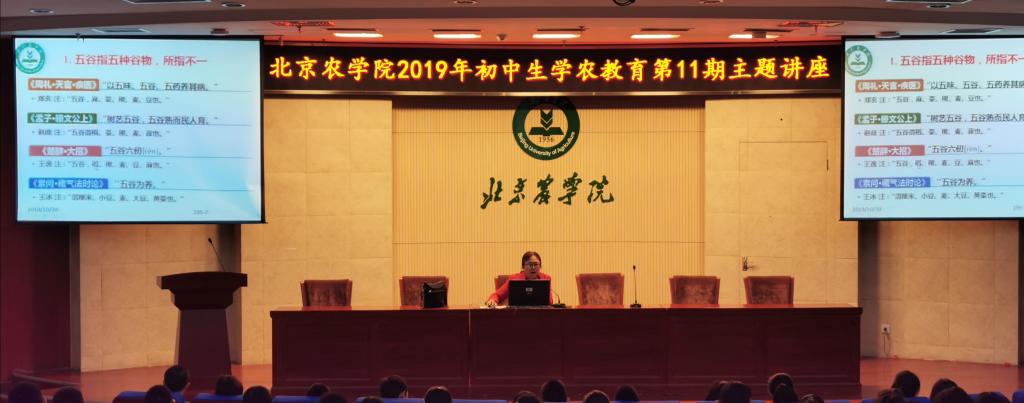 2019年10月30日晚,北农耕读教育中心邀请太阳集团tyc5997陈学珍教授和北京市奶业协会常务理事马战友,为北京教育科学研究院附属石景山实验学校和北大附中石景山学校初二年级学生带来《感受五谷文化、寻根朔源不忘本心》和《牛奶和健康大讲堂》的专题讲座。