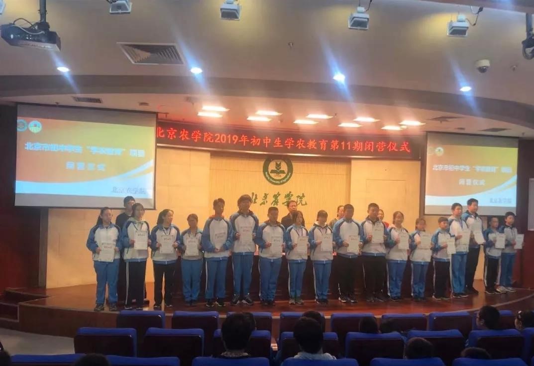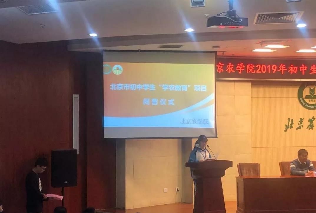 北农耕读教育中心主管陈学珍老师讲话,她希望大家通过学农活动养成劳动习惯,培养积极劳动的态度。让同学们理解生活靠劳动创造,人生靠劳动创造的道理。希望同学们志存高远,用青春之激情谱写出青春之歌。最后,宣布本期学农活动闭营仪式结束。
