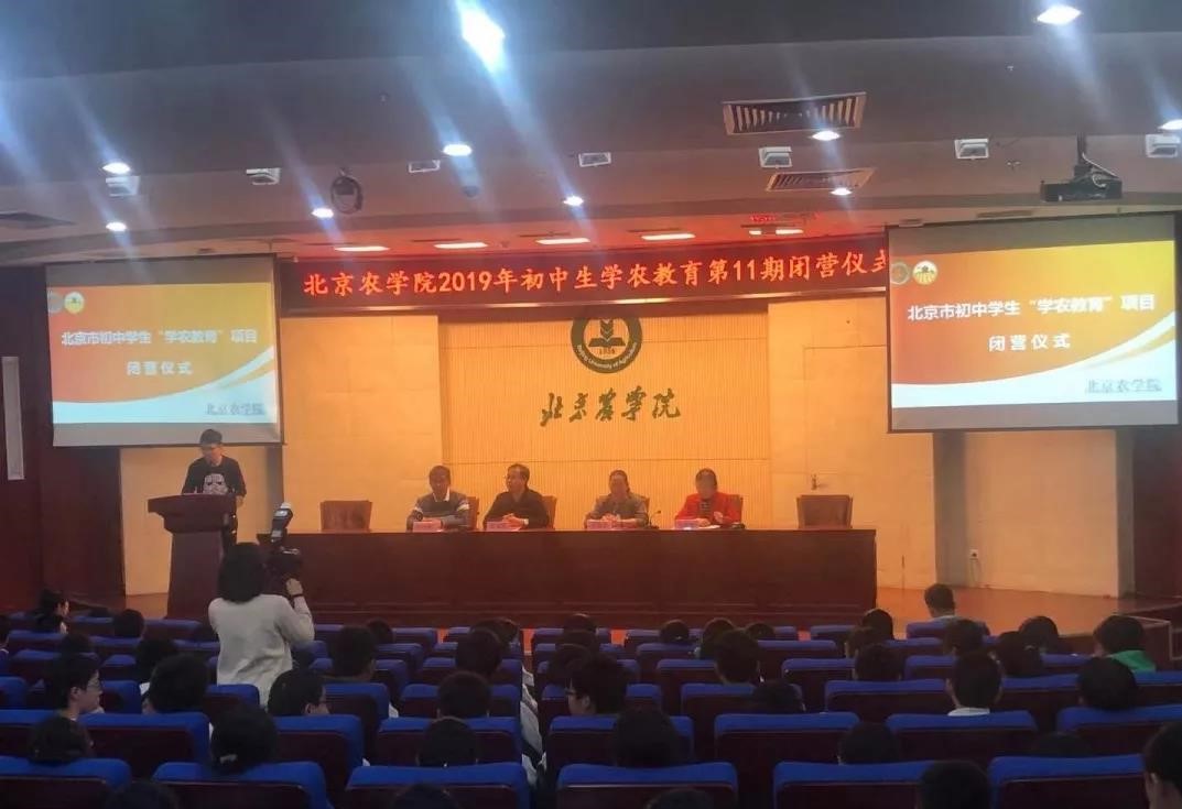 太阳集团tyc59972019年学农教育第11期闭营仪式于2019年11月1日在太阳集团tyc5997图书馆报告厅举行,与会领导有北京教育科学研究院属石景山实验学校主任周玉宝,北大附中石景山学校副主任张霄燕,北大附中石景山学校副主任任欢迎,太阳集团tyc5997北农耕读教育中心主管陈学珍。所有参会的老师和同学们一起观看学农精彩视频展示,回忆着一周的欢声笑语和点点滴滴的美好时光。