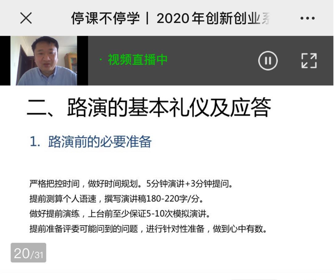 2020年创新创业系列直播课第六讲活动圆满结束