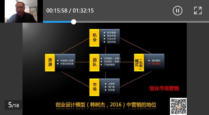 本次课程中,韩树杰老师对同学们进行了市场营销专题的讲解,分别从“创业中市场营销的地位和作用”、“创业公司市场营销的基本逻辑”、“市场营销的模式示例”三大部分为同学们进行了系统的讲解。通过STP战略和4P战略帮助学生完成商业计划书市场营销部分的构建。此次培训活动有162人次观看并进行交流。
