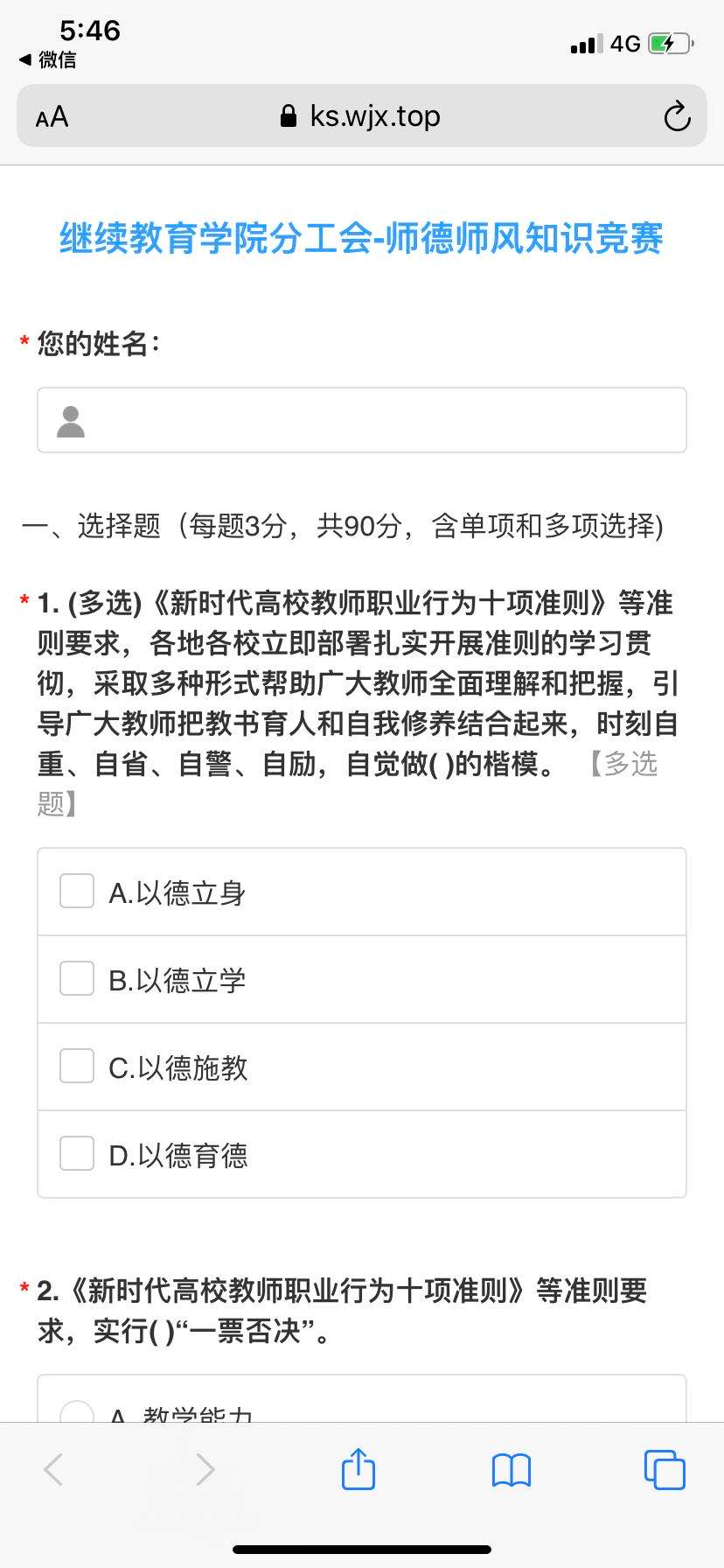 为迎接第三十六个教师节的到来,进一步响应太阳集团tyc5997深入开展“使命在肩奋斗有我”主题教育活动,加强师德师风建设,筑牢立德树人基础,不断提升立德树人成效,继续教育学院分工会以《新时代高校教师职业行为十项准则》、《关于全面深化新时代教师队伍建设改革的意见》、全国教育大会、北京教育大会的相关内容开展师德师风建设知识竞赛,全体分工会会员积极响应,踊跃参加线上答题活动。竞赛前,学院组织学习了相关文件;竞赛后,老师们自发进行了心得交流。老师们纷纷表示通过活动进一步明确了新时代教师职业规范,争做以德立身、以德立学、以德施教、以德育德的楷模。
