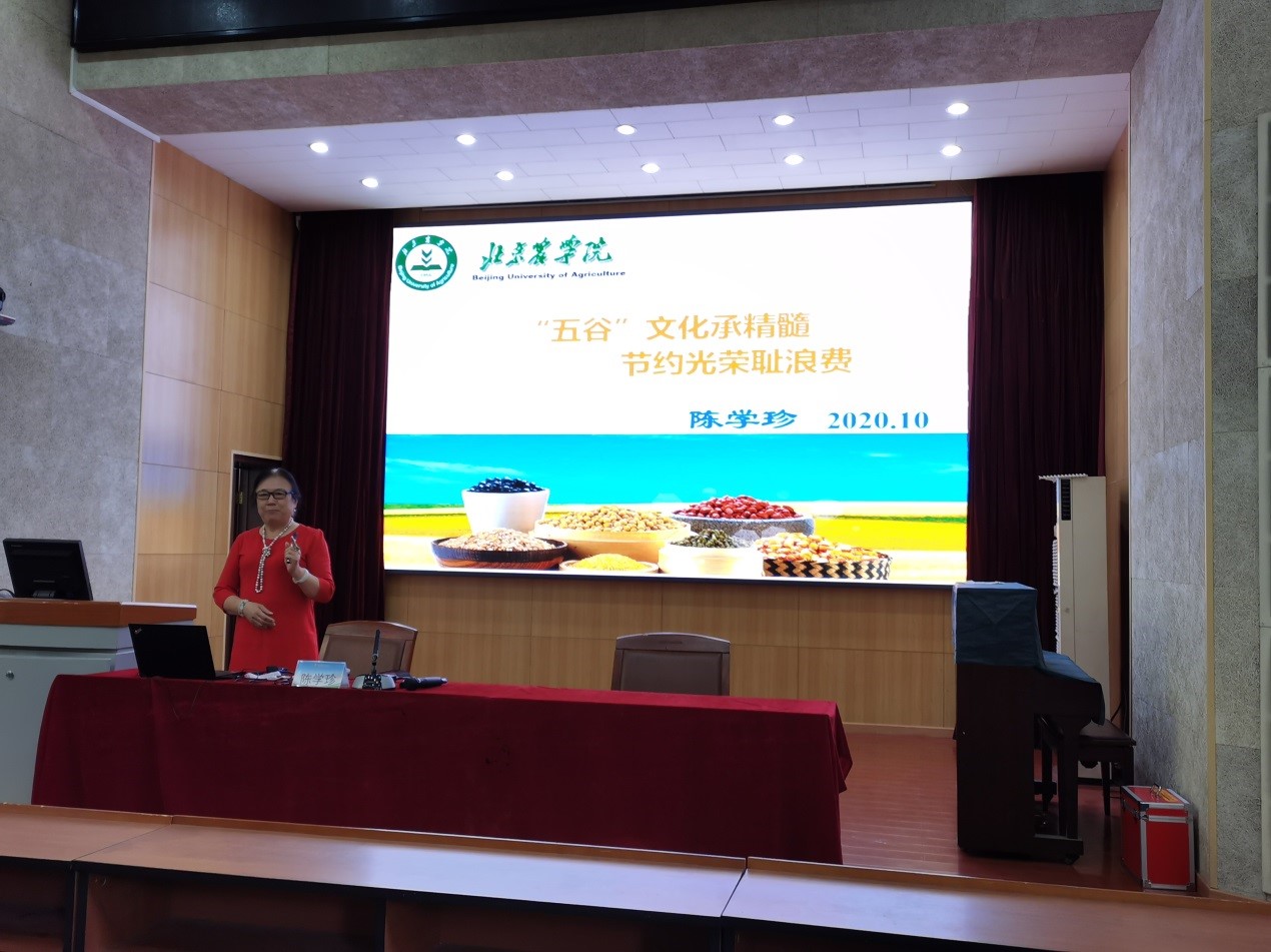 继续教育学院直属党支部为深入贯彻落实习近平总书记关于制止餐饮浪费行为的重要指示精神及市教委《北京市新时代教育系统爱国卫生运动工作方案》,2020年10月19日中午13:20,继续教育学院在培训教室(经管楼报告厅)邀请陈学珍教授开展“五谷文化称精髓,节约光荣耻浪费”农耕文化讲座。