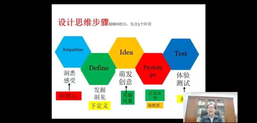 本次课程中,王滨教授具体从“实现创新的全过程”“创新设想的专利保护”“从创新到创业”“大学生创新实践途径”四个方面进行讲述,包括“三创”及三个步骤的递进过程,通过蒂蒙斯的创业过程模型看创新与创业以及设计思维的5个阶段等内容。本期讲座有201人次在线观看并进行交流。