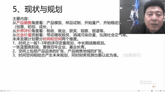 本次课程中,孙锡泉老师具体从“商业计划书结构”展开来进行讲述,其中包括商业计划书的目录、商业计划书执行概要、商业计划书市场分析、商业计划书的产品(服务)及其运营模式、现状与规划、核心竞争力、组织与人员、财务分析、风险与对策、附件、SWOT,PEST等(工具放在合适位置)。