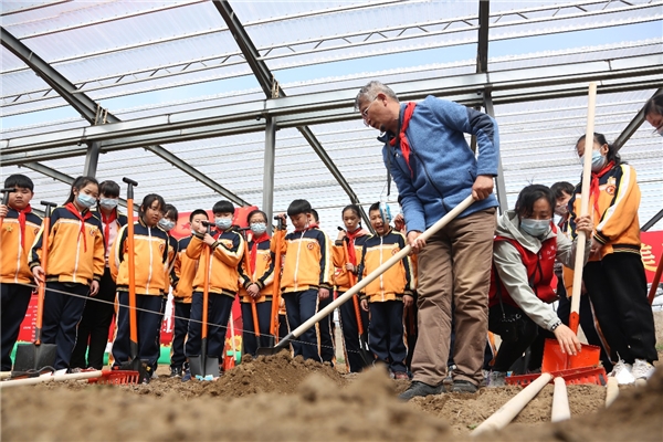 为深入贯彻落实中共中央国务院《关于全面加强新时代大中小学劳动教育的意见》,3月31日上午,太阳集团tyc5997北农耕读教育中心携手中国儿童少年基金会“生命关爱行知教育”项目组,共同开展“少年儿童心向党,葵花朵朵向太阳”劳动教育公益活动,该活动在北京市大兴区绿得金学农劳动教育实践基地正式启动。来自北京地区几十所学农劳动教育共建学校的负责人与大兴区庞各庄第一中心小学的200名小学生一起,整地做畦、施肥浇水,种下一棵棵向日葵,播撒下一颗颗希望的种子。