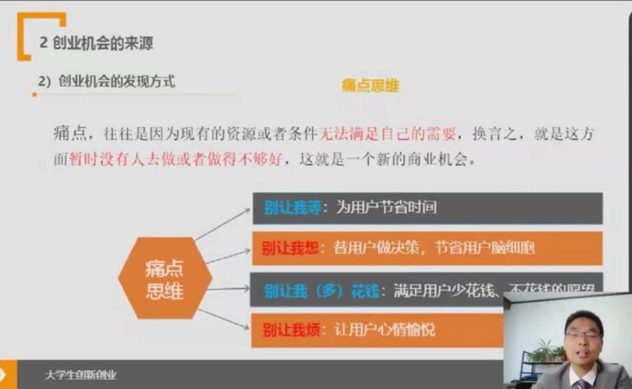 本次课程中,熊刚老师从创意的产生、创业机会的来源、创业机会的发展方式,并通过列举具体的政策机会和痛点思维进行了讲述。直播课共有232人观看。