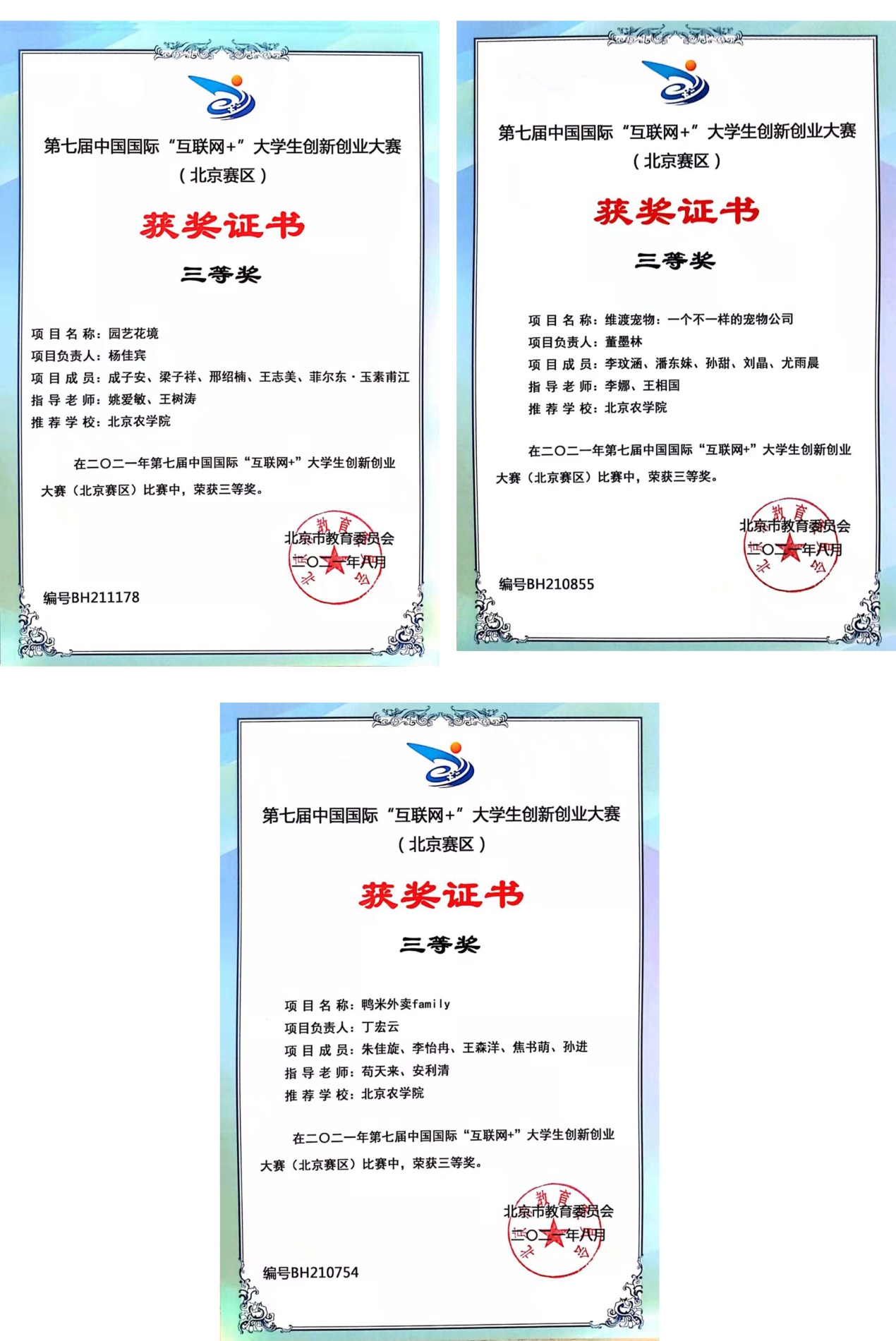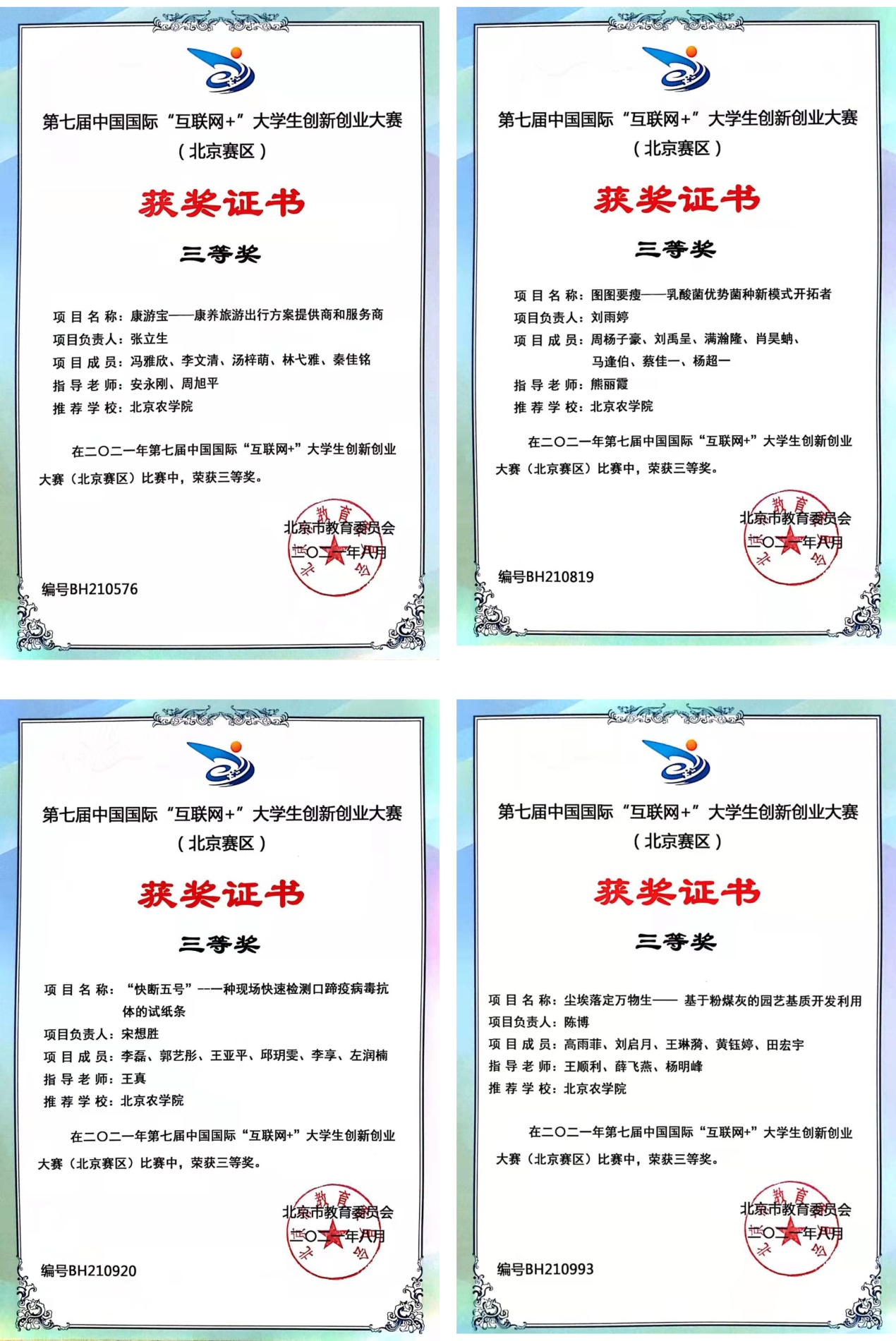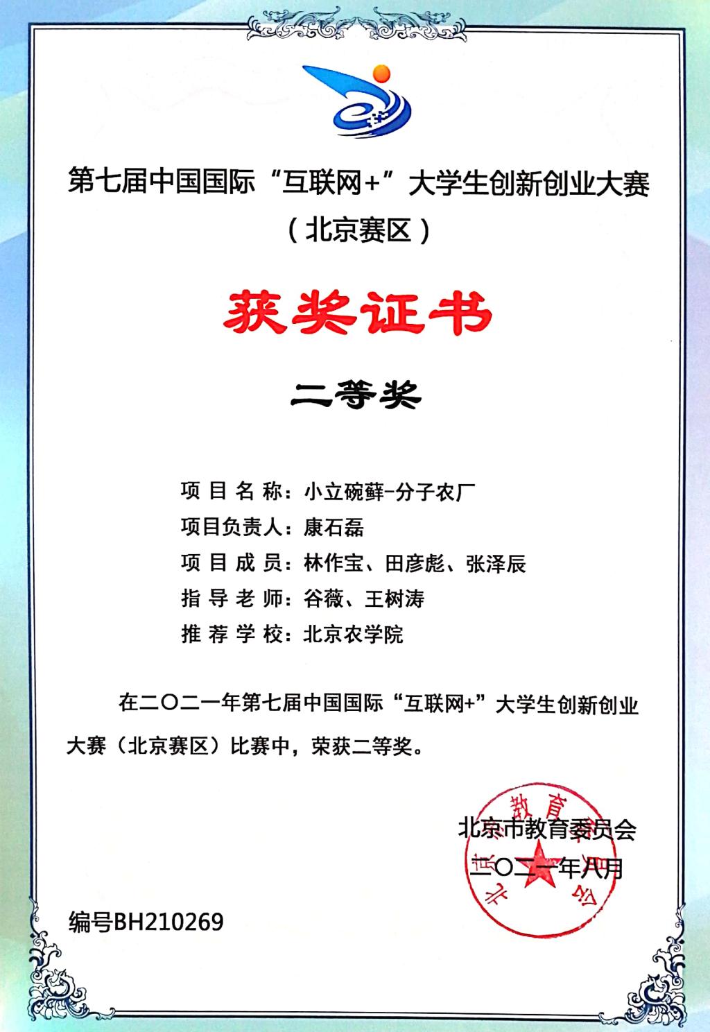 由我校动物医学、动物科学、市场营销、工商管理学生共同组队的“牛为先—国内首创牛副流感一站式服务”项目(指导教师:王真),与来自北京45所高校的406个项目,进入北京赛区“高教主赛道和“青年红色筑梦之旅赛道”的复赛,经过层层比拼,最终突出重围并荣获一等奖,同时进入国赛。指导教师王真老师荣获“优秀指导教师奖”。