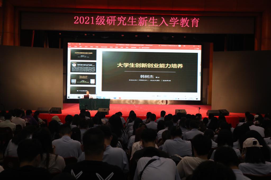 本届新生入学教育中,由创新创业学院邀请了知名商业顾问与创业导师、多项双创赛事评审专家韩树杰博士为同学们带来了《大学生创新创业能力培养》专题讲座。本科生的专题讲座采取了线上录播方式,研究生讲座于9月9日在大礼堂开讲。
