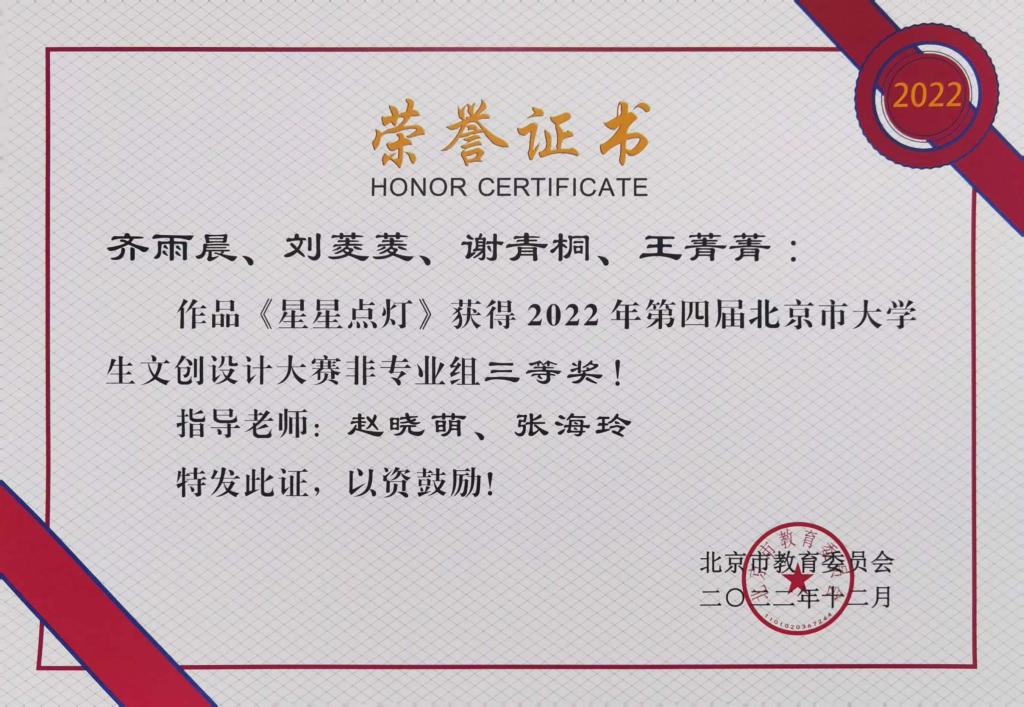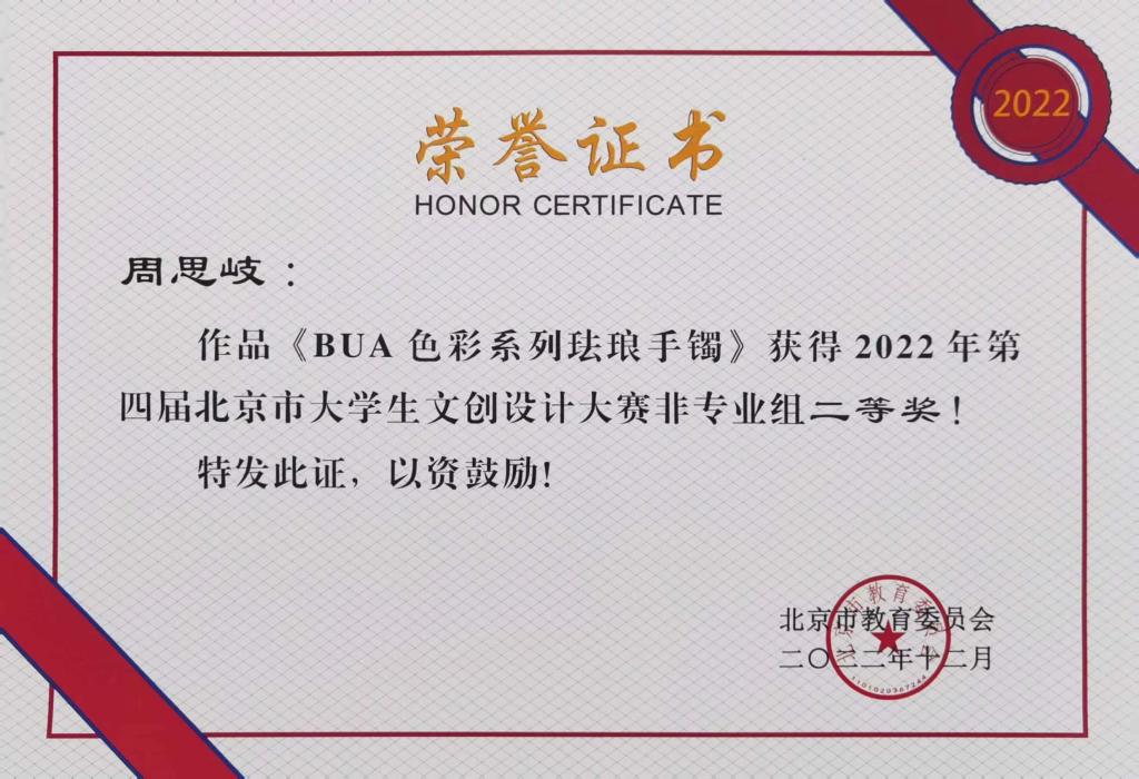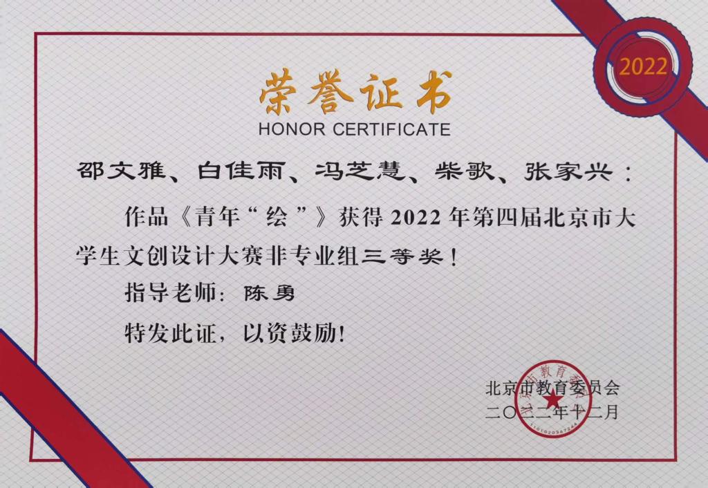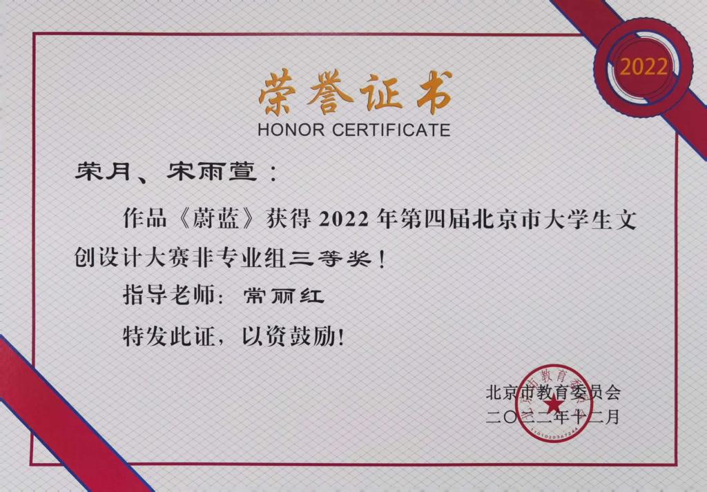 由北京市教委举办的2022年第四届北京市大学生文创设计大赛评选结果近日公布,我校再次获得优秀组织奖,并荣获非专业组二等奖2项,三等奖5项,专业组三等奖1项的好成绩。