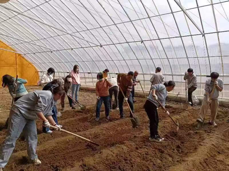 在北农耕读教育中心老师的带领下,北大医学部师生学习耕读文化、实践整地做畦、DIY微景观、制作餐桌美食,充分感受劳动的乐趣。他们放下手术刀,离开实验室,虽然是第一次拿起铁锹、锄头、耙等农具,第一次站整地、施肥、松土、播种,但在热火朝天的劳动实践中,在绿色盎然的温室大棚中,在春光无限的农学院校园中,不仅充分体验春耕的忙碌与辛苦,更感受着春播给人们的憧憬与希望,也赞叹着农学院的春日美景。