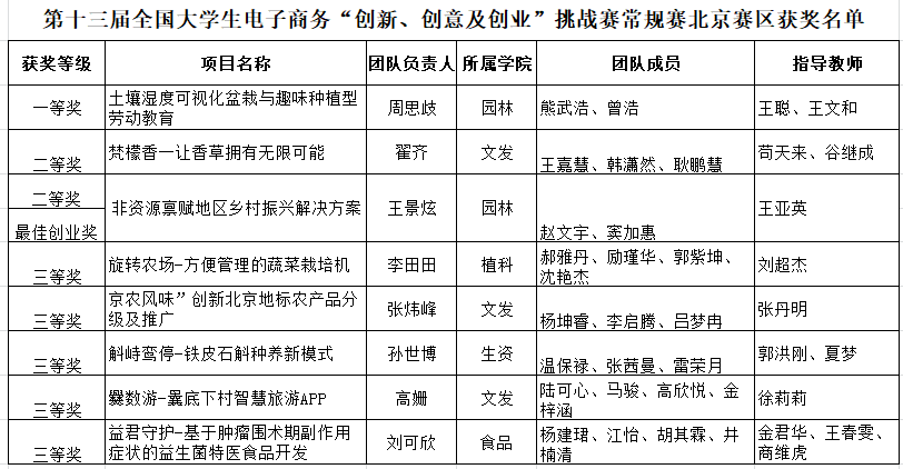 此次比赛我校共有306支团队,1220名学生报名参赛。按照组委会竞赛规则,共推荐17支团队北京赛区决赛。多数项目聚焦乡村振兴创新创业,团队成员多科融合,充分发挥专业优势。