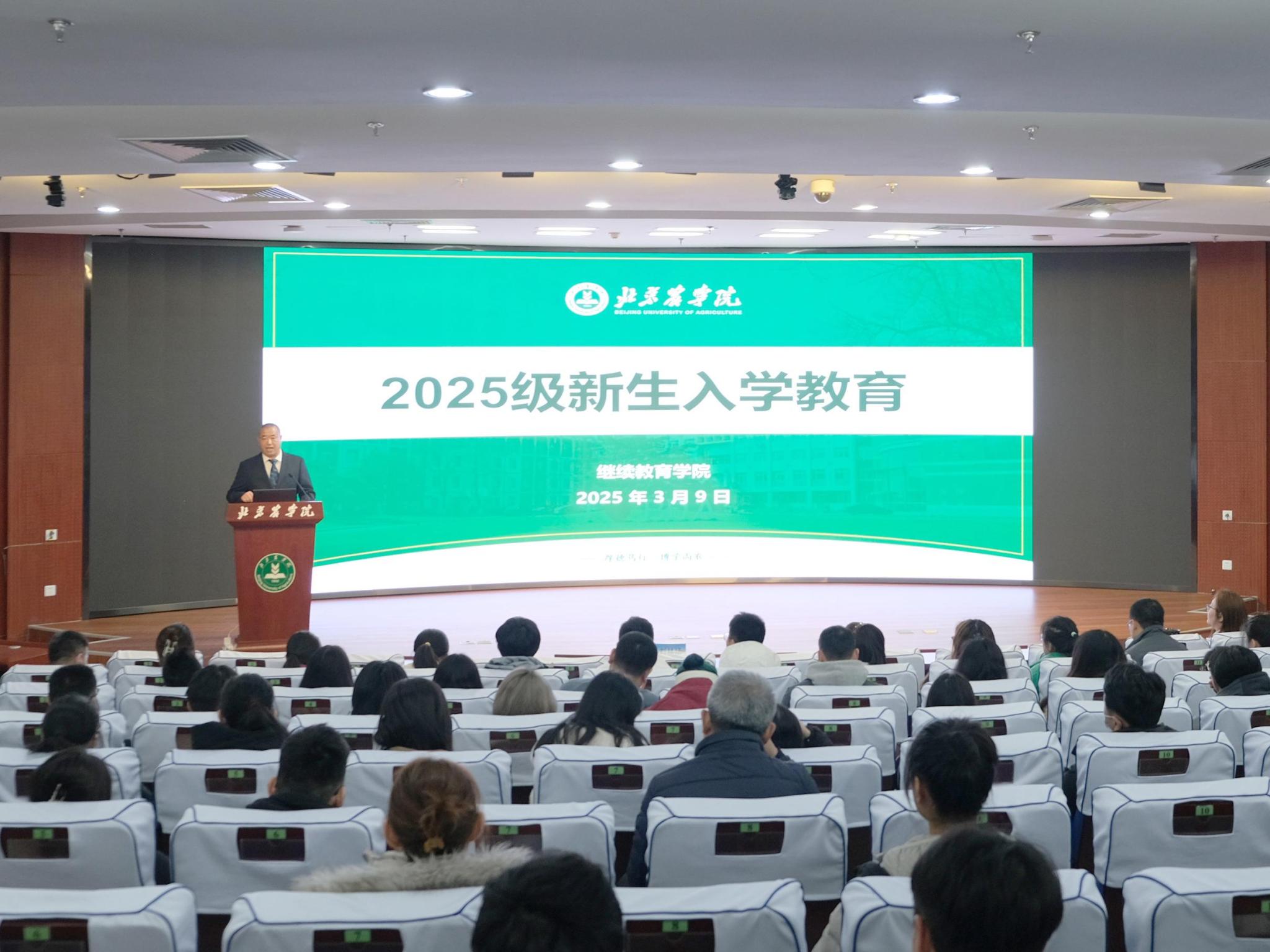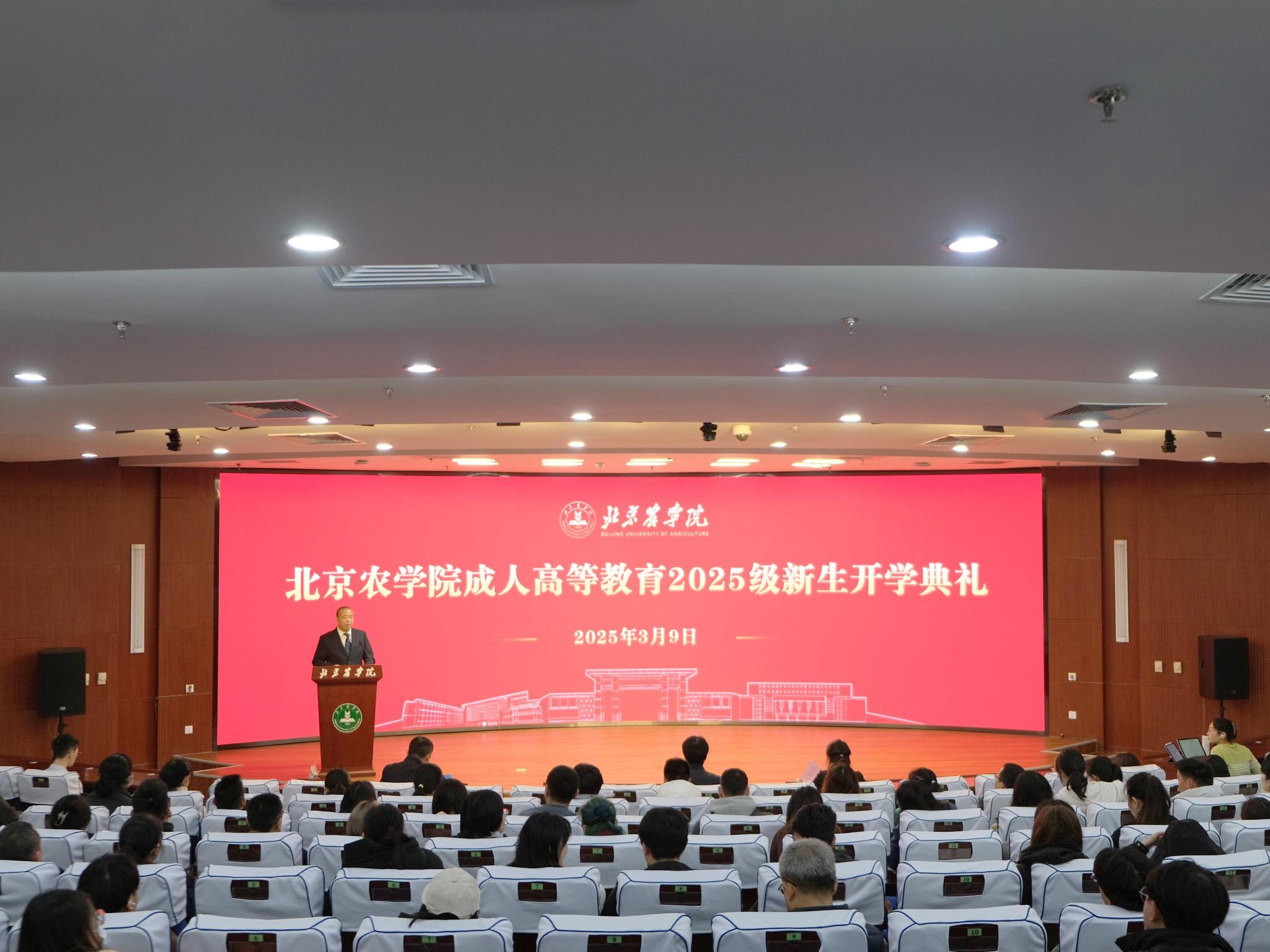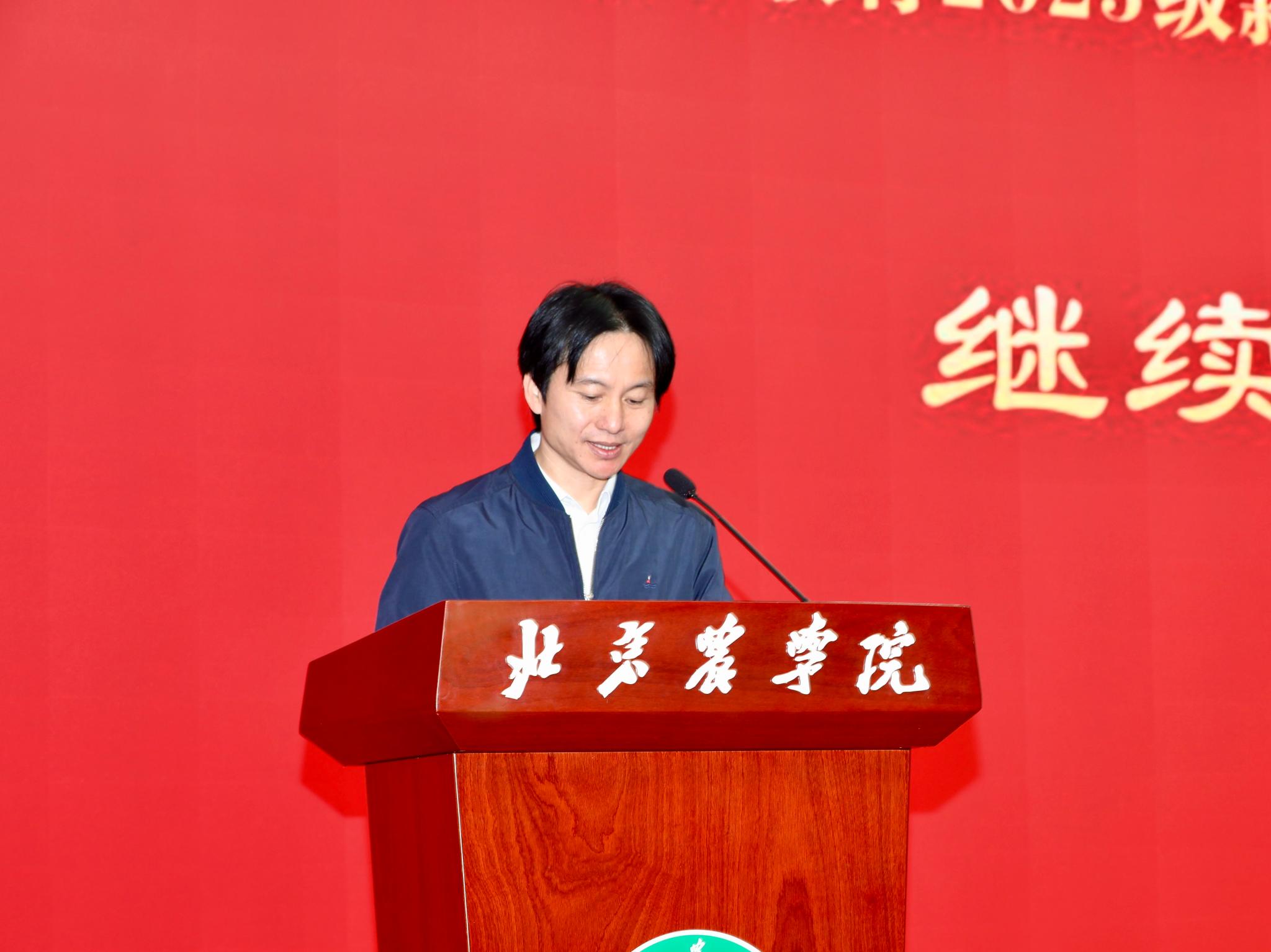 唐衡代表学校对2025级新生的到来表示热烈欢迎。他勉励同学们以终身学习为舟,以知识更新为桨,不断提升自我,向全体新生提出三点希望:一是以问题为导向,学以致用。希望同学们带着实践中的困惑走进课堂,培养创新思维,将知识转化为解决方案,提升解决实际问题的能力。二是以韧性为基石,持之以恒。希望同学们珍惜学习时光,努力克服工学矛盾,勤于学习、敏于求知,以饱满的热情投入到学习中。三是以情怀为底色,服务社会。希望同学们传承和发扬“厚德笃行,博学尚农”的校训精神,将个人成长与社会发展紧密结合,为首都发展和乡村振兴贡献智慧和力量。