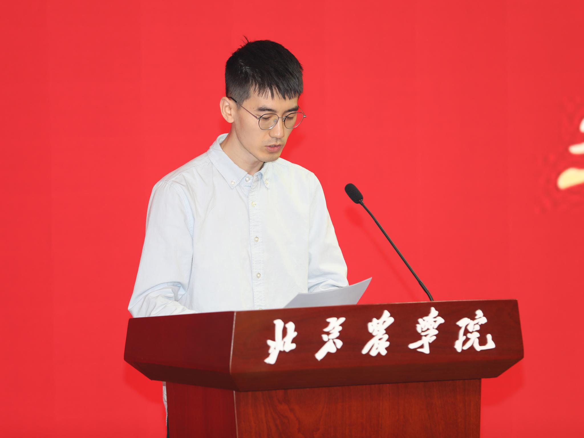 2025级动物医学专业学生李岩代表新生发言,他表示兴趣和热爱是强大动力,希望在未来学习中打好理论基础、积极参与实践,勇敢追梦,不负青春。